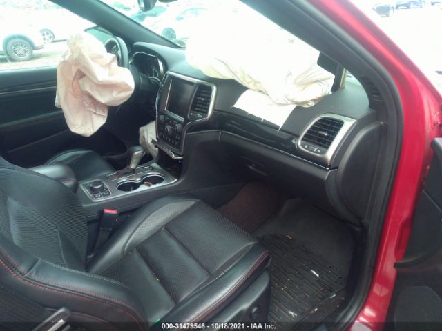 The 2017 Jeep Grand Cherokee Trailhawk wears its red paint with pride—though not without a few signs of past wear. The color remains vibrant under natural light, showing only minor oxidation in shaded areas, such as the rear quarter panel near the wheel arches. Surface scratches are minimal and mostly superficial, likely from gravel or parking lot debris. However, the most notable feature is a documented front-end damage event, which aligns with the NHTSA record indicating structural impact on the vehicle’s nose section.