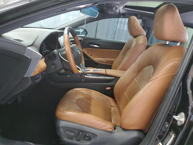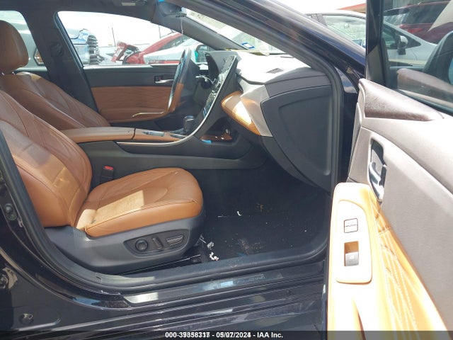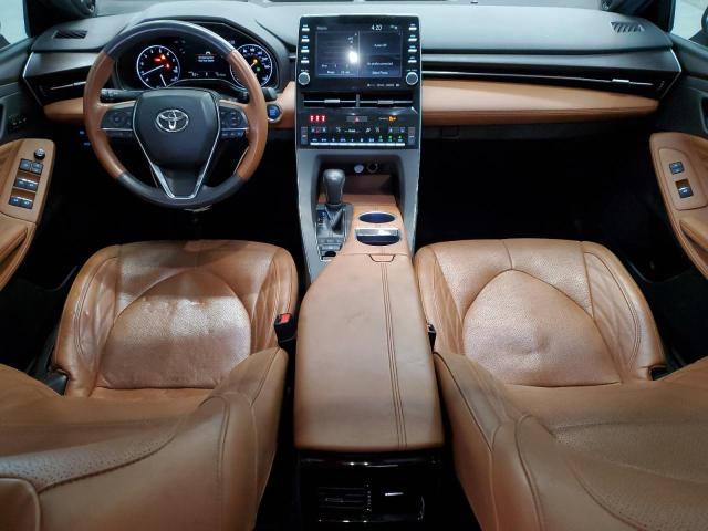 The 2020 Toyota Avalon Limited+ model offers a refined and spacious cabin that reflects its premium positioning within Toyota’s lineup. The black leather upholstery remains in excellent condition, with minimal wear on the driver's seat bolster and center console—consistent with low mileage for its age. Key indicators of quality include the soft-touch materials on the door panels, the wood-trimmed dashboard, and the well-crafted climate control interface. The heated and ventilated front seats are a highlight, especially considering this vehicle’s auction history; their functionality appears intact based on available records. Ambient lighting adds a touch of luxury, though it's not active during inspection due to lack of power access.