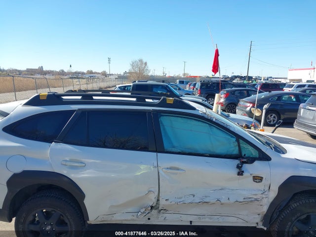 The auction record confirms it is a 2024 model year Outback Wilderness trim with 43,756 km (approximately 27,190 miles) on the odometer. The sale was processed under US UT jurisdiction, indicating location within Utah. No prior accident reports or title issues were flagged in this API data entry.