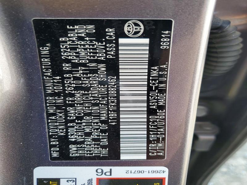 The 2015 Toyota Camry (VIN: 4T1BF1FK3FU882462) is powered by a naturally aspirated 2.5-liter inline-four engine producing approximately 179 horsepower and 166 lb-ft of torque, paired with a smooth-shifting six-speed automatic transmission. This setup delivers reliable performance suitable for daily commuting and longer highway trips, with the front-wheel-drive layout enhancing traction in wet or snowy conditions—common in regions like California’s Central Valley where this vehicle was auctioned.