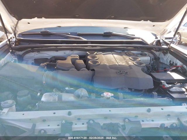 The 2018 Toyota 4Runner in white presents a bold, boxy silhouette that’s instantly recognizable—especially with its signature upright grille and robust fender flares. The paint finish appears to be in decent condition overall, though the body does bear signs of past impact damage, specifically on the right side, including front and rear areas. These marks are consistent with collision events reported in auction records, but they haven’t led to visible rust or deep scratches—indicating that repairs were likely handled professionally.