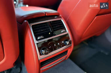 The rear seating area offers ample legroom and can be equipped with executive chairs featuring power adjustments and massage functions (if included in the trim). A panoramic sunroof is available as an option, adding to the sense of space and openness. The center console houses a wireless charging pad and dual USB ports, supporting modern connectivity needs.