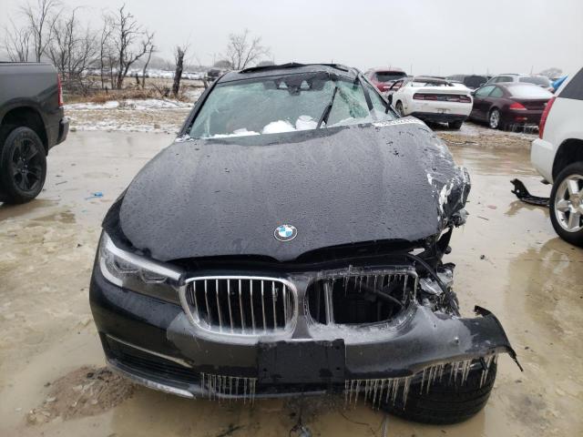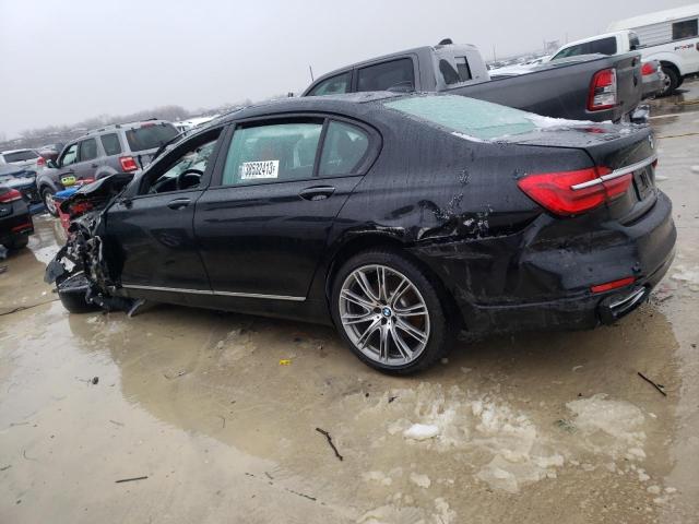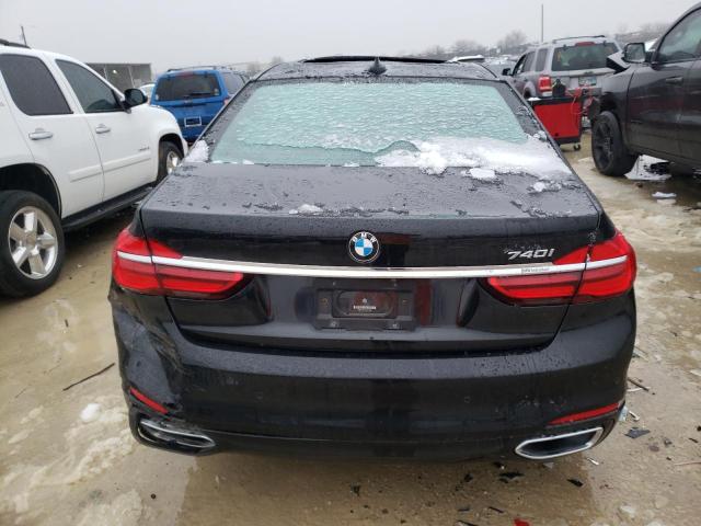 The 2018 BMW 740i sedan displays the brand’s signature design language with its elongated hood, short overhangs, and prominent kidney grille. The body is painted black, which enhances its sleek silhouette and gives it a sophisticated appearance suitable for both formal and urban environments.
