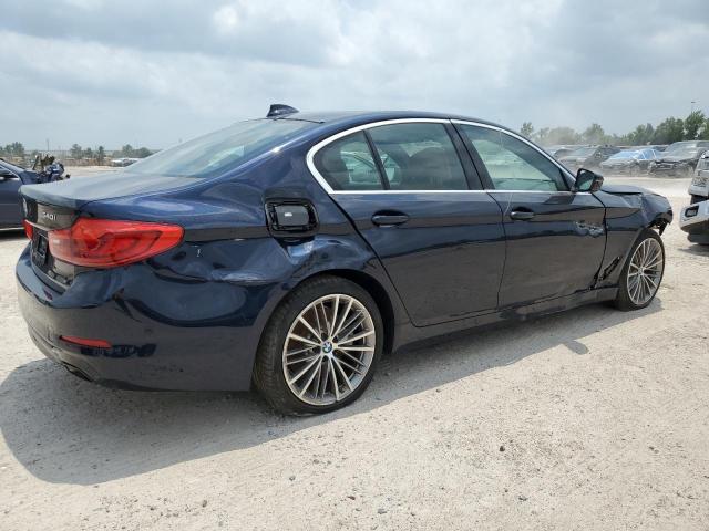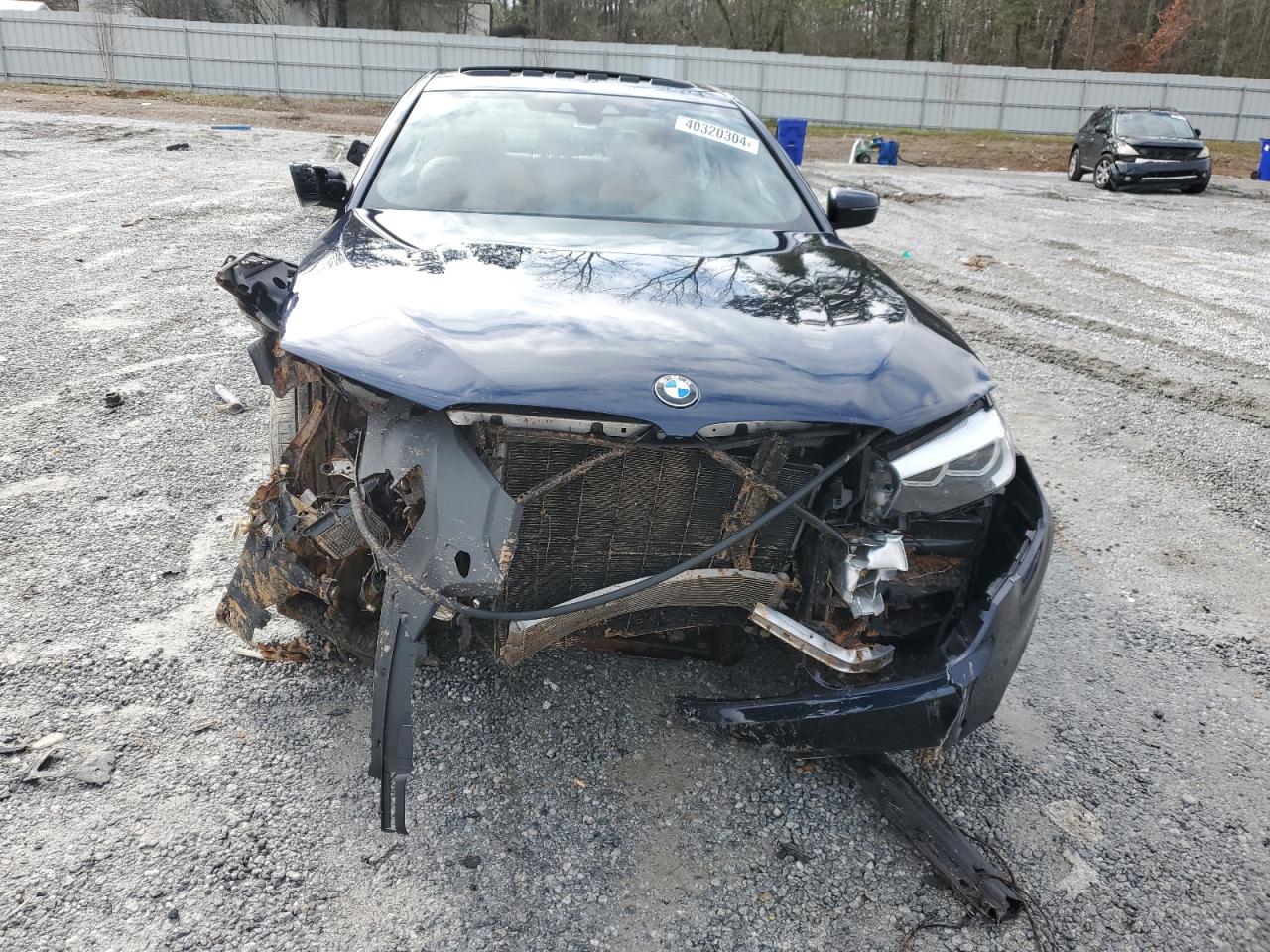 The 2020 BMW 5er presents a sleek and purposeful silhouette typical of the German manufacturer’s full-size sedans. Its blue paintwork is consistent across both auction listings, though no photos are available to assess finish quality—scratches, swirl marks, or fading could be present beneath surface-level wear. The front-end damage recorded in multiple reports suggests significant impact, likely from a collision involving the bumper, grille, and possibly headlights.