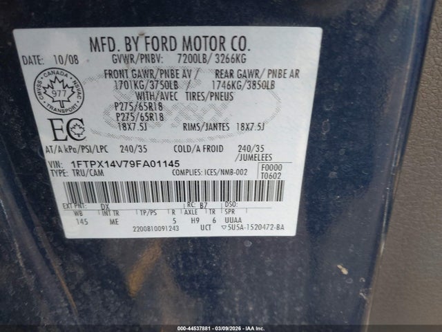 Pojazd o VIN: 1FTPX14V79FA01145 został oferowany na aukcji IAAI w Portland, Oregon, 2 marca 2026 roku – co wydaje się być przyszłą datą (przypuszczalnie błąd w API). W raporcie zaznaczono, że pojazd miał „Engine Damage” jako główny typ uszkodzenia. To poważne ostrzeżenie dla potencjalnego kupującego – nawet jeśli pojazd działa („Run & Drive”), to uszkodzenie silnika może oznaczać konieczność wymiany lub głębokiej naprawy. Uszkodzenie nie zostało precyzowane, ale w kontekście FFV i V8 5.4 – może dotyczyć układu paliwowego, przewodów lub zaworów.