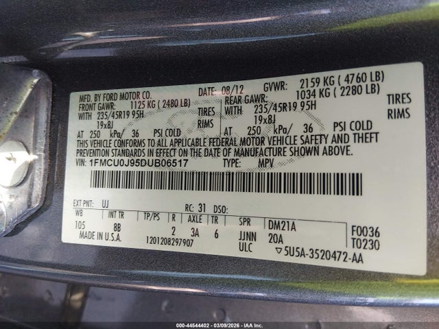 Інформація про Ford Escape 2013 року, модель Titanium, була отримана з бази даних IAAI, яка є аукціоном у Сполучених Штатах Америки. Автомобіль був оголошений як «Rebuilt Salvage» — це означає, що автомобіль мав значні пошкодження і був відремонтований або відновлений. Основне пошкодження було на задньому лівому боці — це може бути результатом аварії або зіткнення.