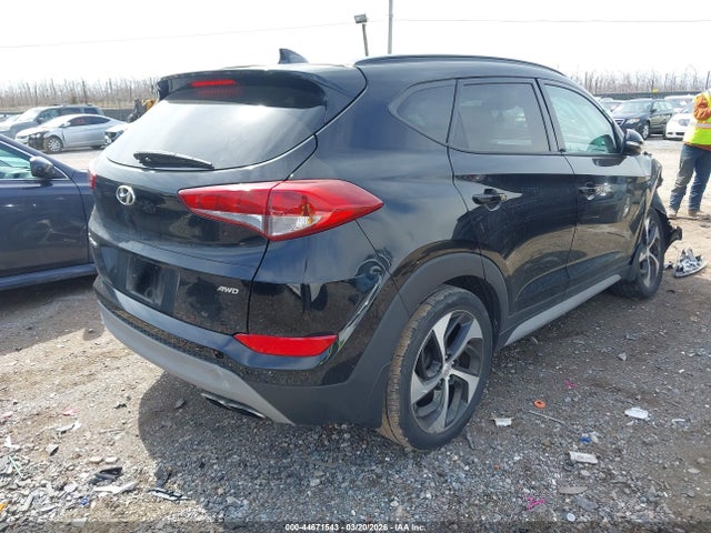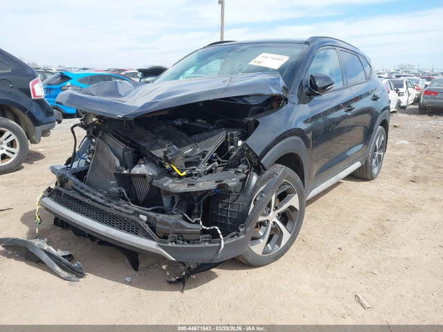 Зовнішній вигляд Hyundai Tucson 2018 року відзначається сучасним дизайном, який включає гострі краї і чіткі лінії. Автомобіль має чорний колір, що підкреслює його спортивний та елегантний характер. Загалом, автомобіль виглядає сучасно і привабливо, хоча у нього є деякі пошкодження — зазначено «Right Rear, Front END» (правий задній та передній кінець). Це означає, що автомобіль мав зіткнення, яке вплинуло на праву сторону і передню частину. Проте, у відомостях не зазначено, чи був ремонт, або які саме деталі були пошкоджені. Також, у відомостях зазначено, що автомобіль був проданий на аукціоні IAAI в США, що підтверджує його розміщення за кордоном.