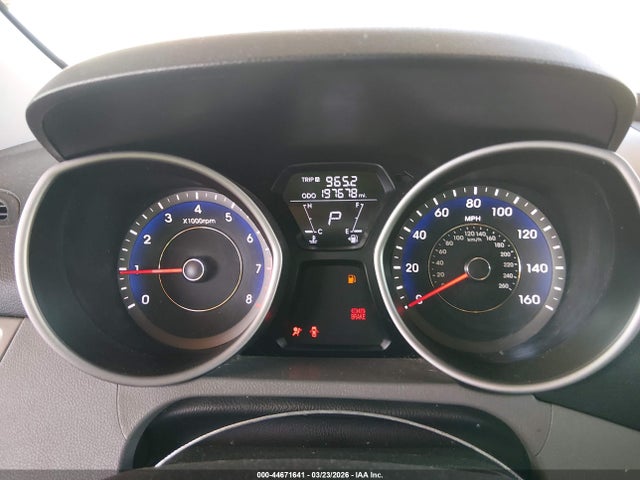 Інтер’єр Hyundai Elantra 2013 року виглядає солідно та функціонально, з урахуванням стандартів того періоду. Використовуються пластикові панелі з матовою поверхнею, що не відображає відбитки і не піддається швидкому забрудненню. Кермове колесо оснащене регульованими кнопками для керування мультимедійною системою, хоча сама система є базовою — з 5-дюймовим дисплеєм, без підтримки Apple CarPlay чи Android Auto. Сидіння виконані з тканини (не шкіри), але пропорції і комфорт при довгих поїздках — задовільний рівень, особливо для седана середнього класу. На панелі приладів домінує вертикальна компоновка, з цифровим спідометом і аналоговим тахометром — типова конфігурація для моделей 2013 року. Відсутність панелі керування мультимедіа в центральному консолі викликає деяку незручність, але загальна компоновка інтер’єру виглядає збалансованою.