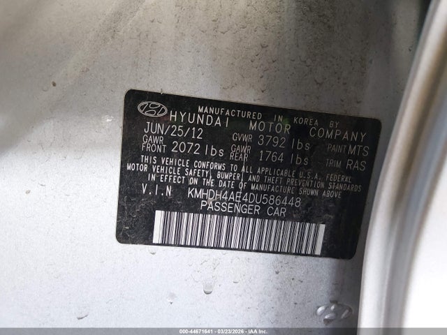 Автомобіль з VIN-кодом KMHDH4AE4DU586448 був проданий на аукціоні IAAI 2 листопада 2023 року в місті Фенікс, штат Аризона (US AZ - PHOENIX Offsite). Його опис: "2013 Hyundai Elantra 1.8L for Sale in Phoenix AZ". Пробіг — 0 км, що є дуже сумнівним, оскільки автомобіль був проданий через аукціон, і його стан повинен бути визначеним.